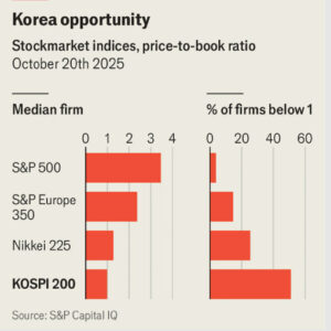 Es que la performance del KOSPI 200 llama la atención incluso contemplando un año en que los mercados tuvieron buenos resultados. El índice coreano citado creció un 69% (en won) frente a un 15% del S&P 500. El articulista señala que el boom de la IA ha ayudado a grandes fabricantes de chips como Samsung Electronics y SK Hynix. Pero el gran vector fue la iniciativa del Estado de mejorar el valor de las compañías cotizantes locales a través de la mejora de su muy pobre gobernanza.